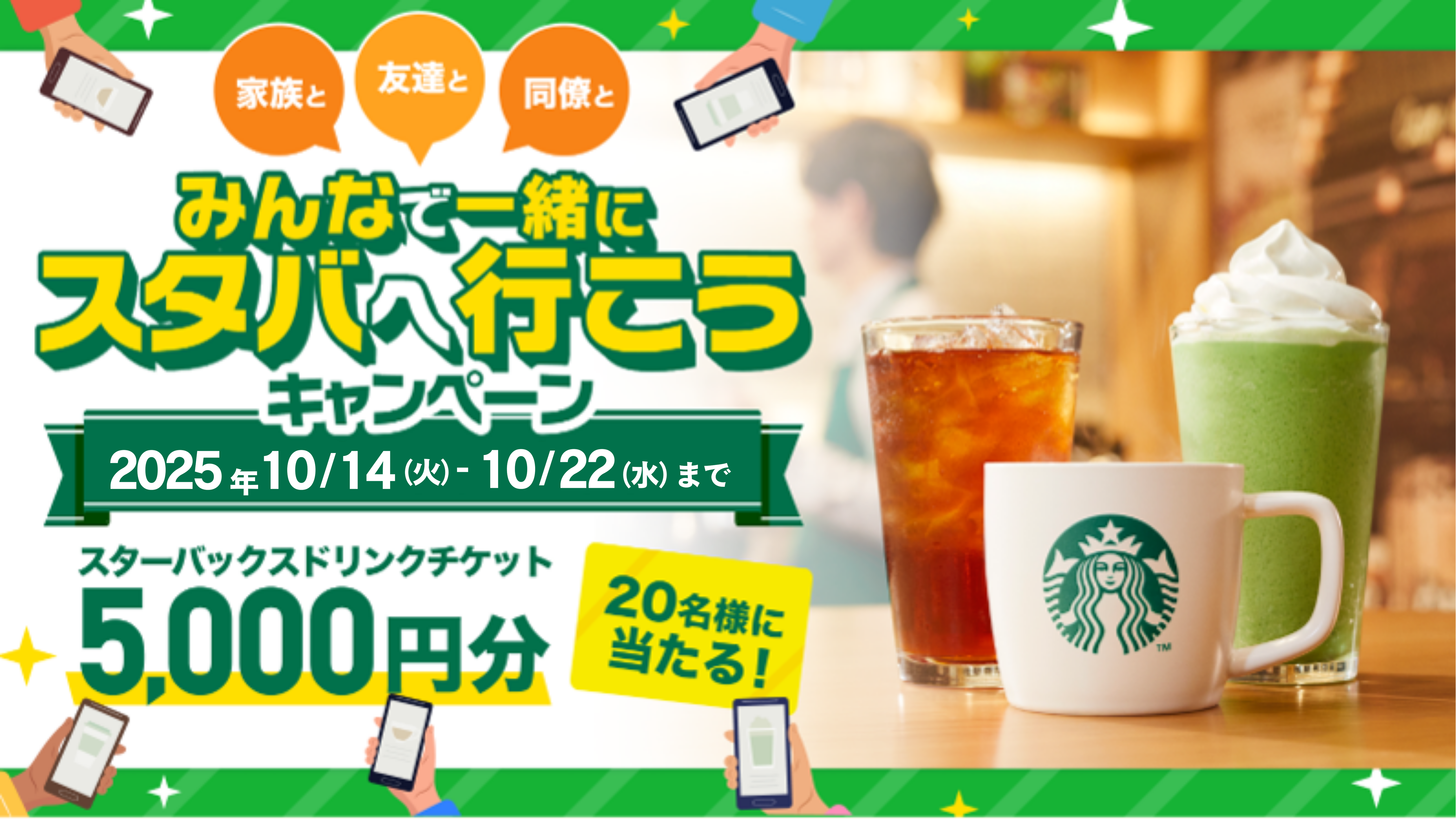 当選したドリンクチケットで、ご家族やご友人、同僚…大切な方々を誘ってスタバでホッとひと息☕️🥤