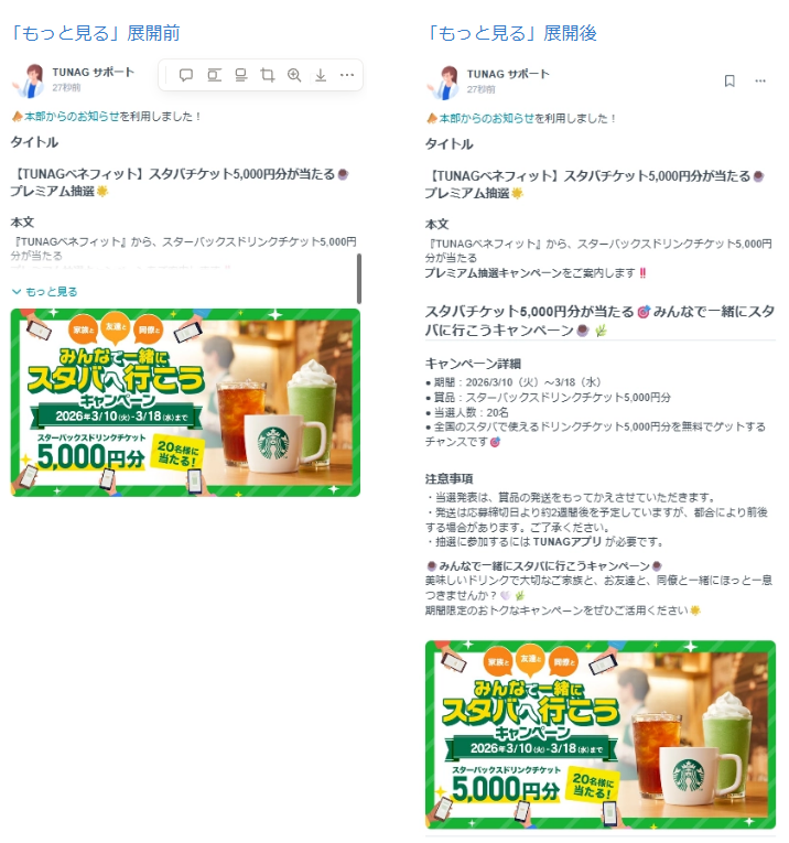 **【TUNAGベネフィット】みんなで一緒にスタバへ行こうキャンペーン**